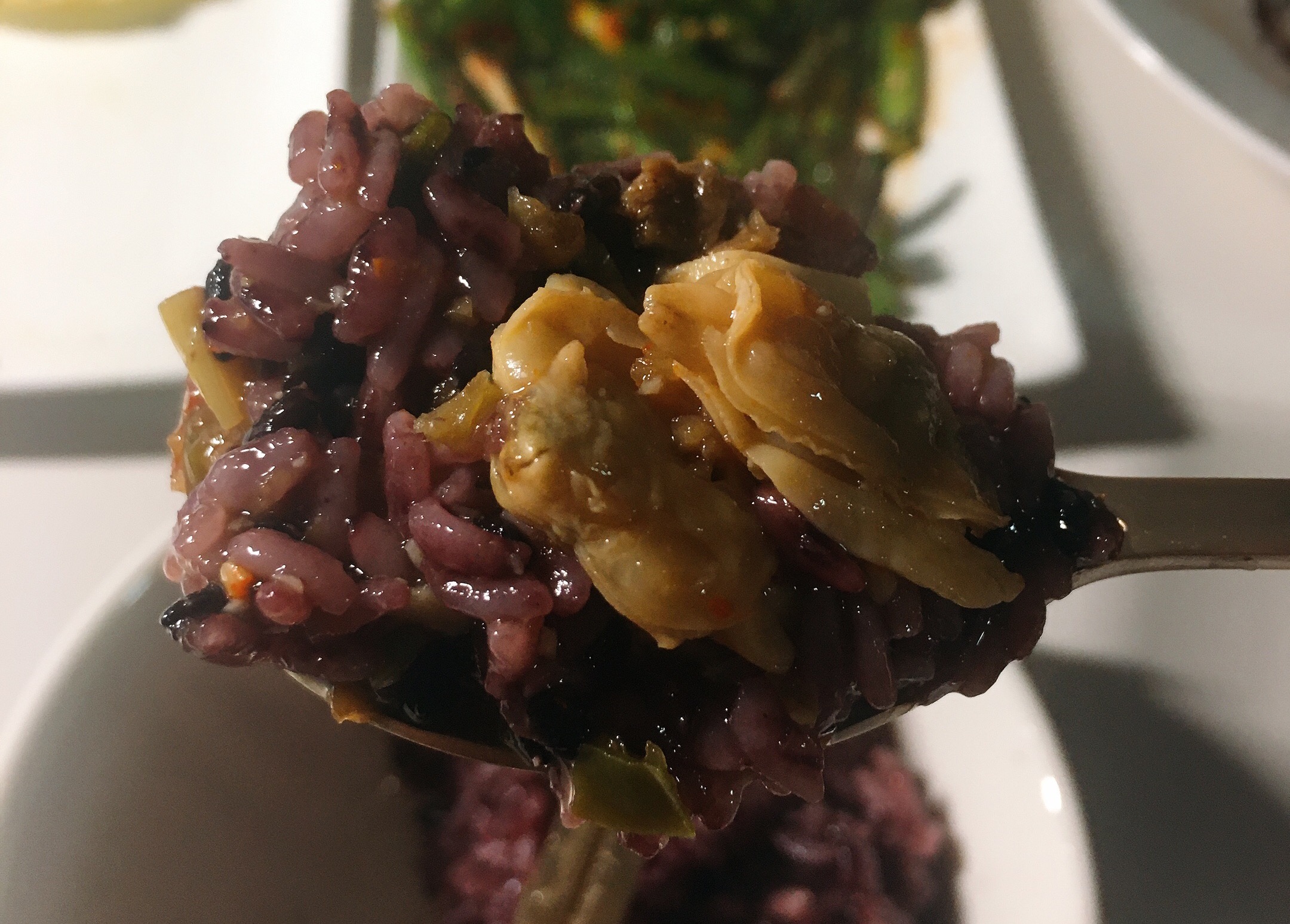 밥을 먹다가 약간 민망하긴 했지만, 그래도 매일 Arrangement 이미지만 남기기엔 임팩트가 없는 듯하여, 입구컷을 찍어 보았습니다. 물론 우연히 조갯살이 두개가 떠진건 아니고 제가 일부러 올린 연출 사진입니다. 밥을 먹다 중간에 사진을 찍는다는 것이 아직은 어색하긴 하지만, 언젠가