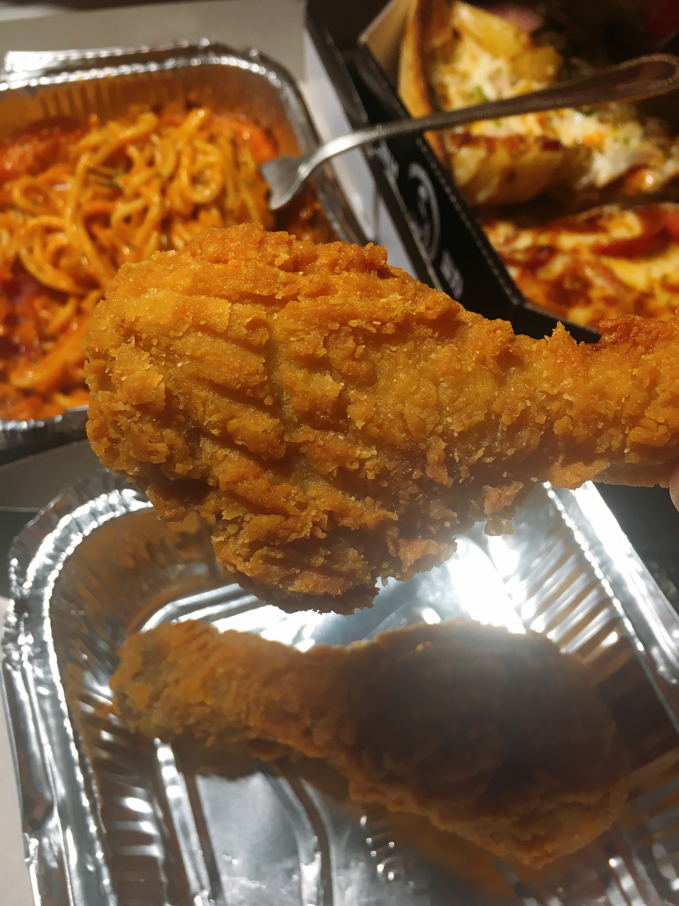 닭다리를 처음 영접할 땐 '뭐지?' 약간 닭다리 모양의 치킨너겟 느낌이 있었습니다. 아직 입에 넣기 전이라 판단은 이르다고 생각하면서 한 컷 찍어 보았네요. 개인적으로 물반죽과 가루반죽 중 선호하는걸 고르자면 그런거 가리지 않습니다. 생닭만 아니면 괜찮아요. 치킨은 사랑이니까요.