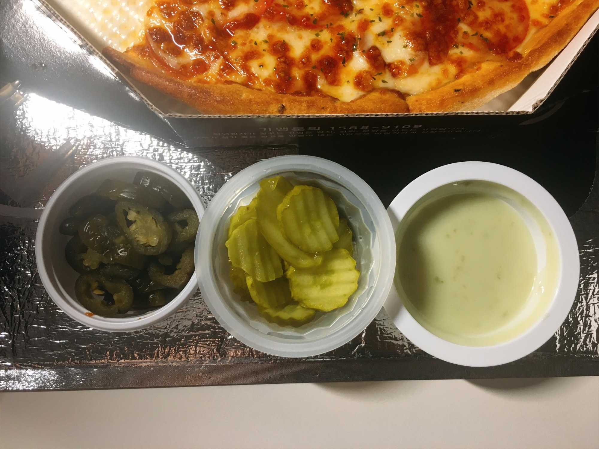 추가로 주문한 청양마요 소스를 찍어서 먹어보았는데요, 페퍼로니 본연의 맛이 강해서 그런지 청양마요 소스의 맛이