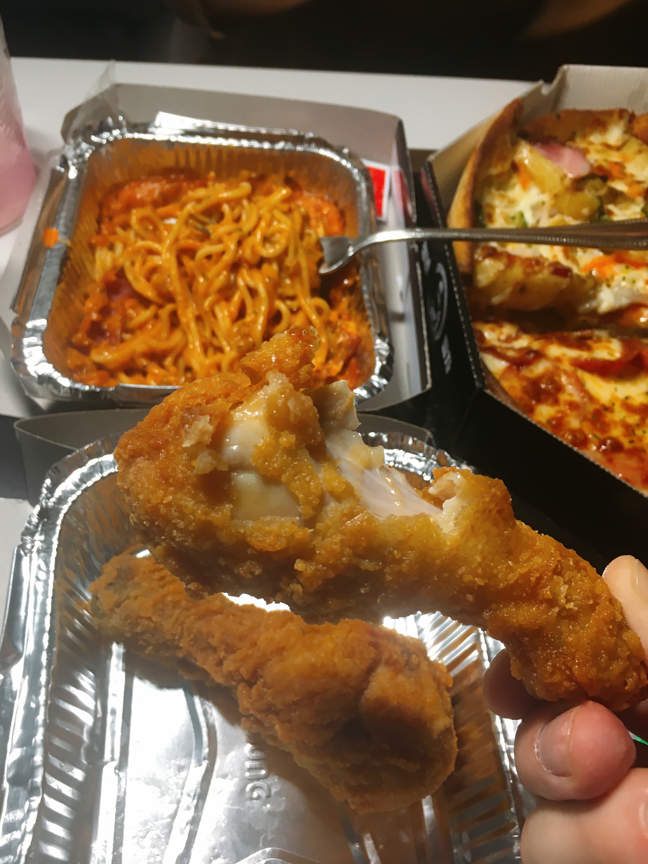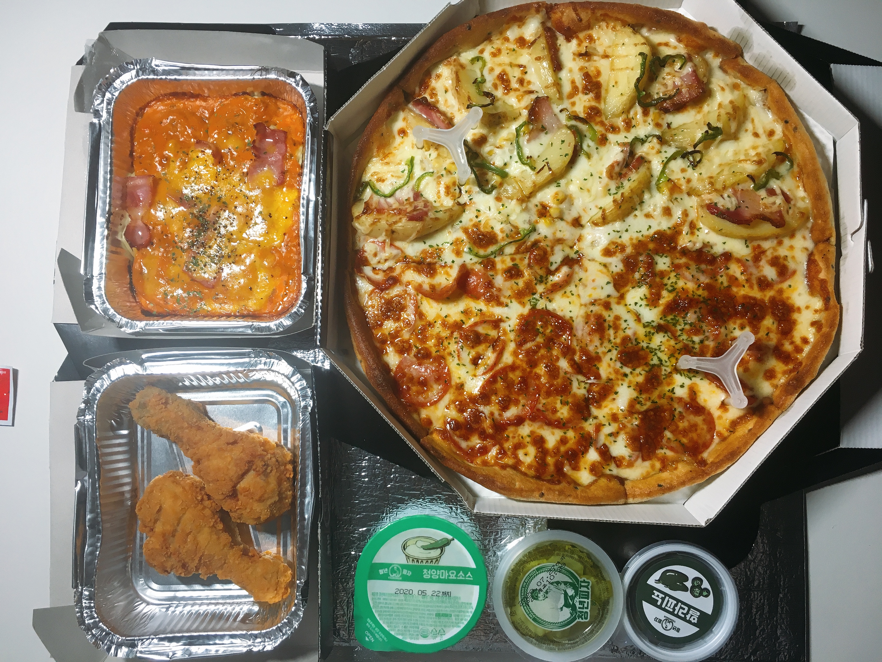 무언가 한주의 추억거리를 남기기 위해 시켰습니다. 피자요. 치킨도요.