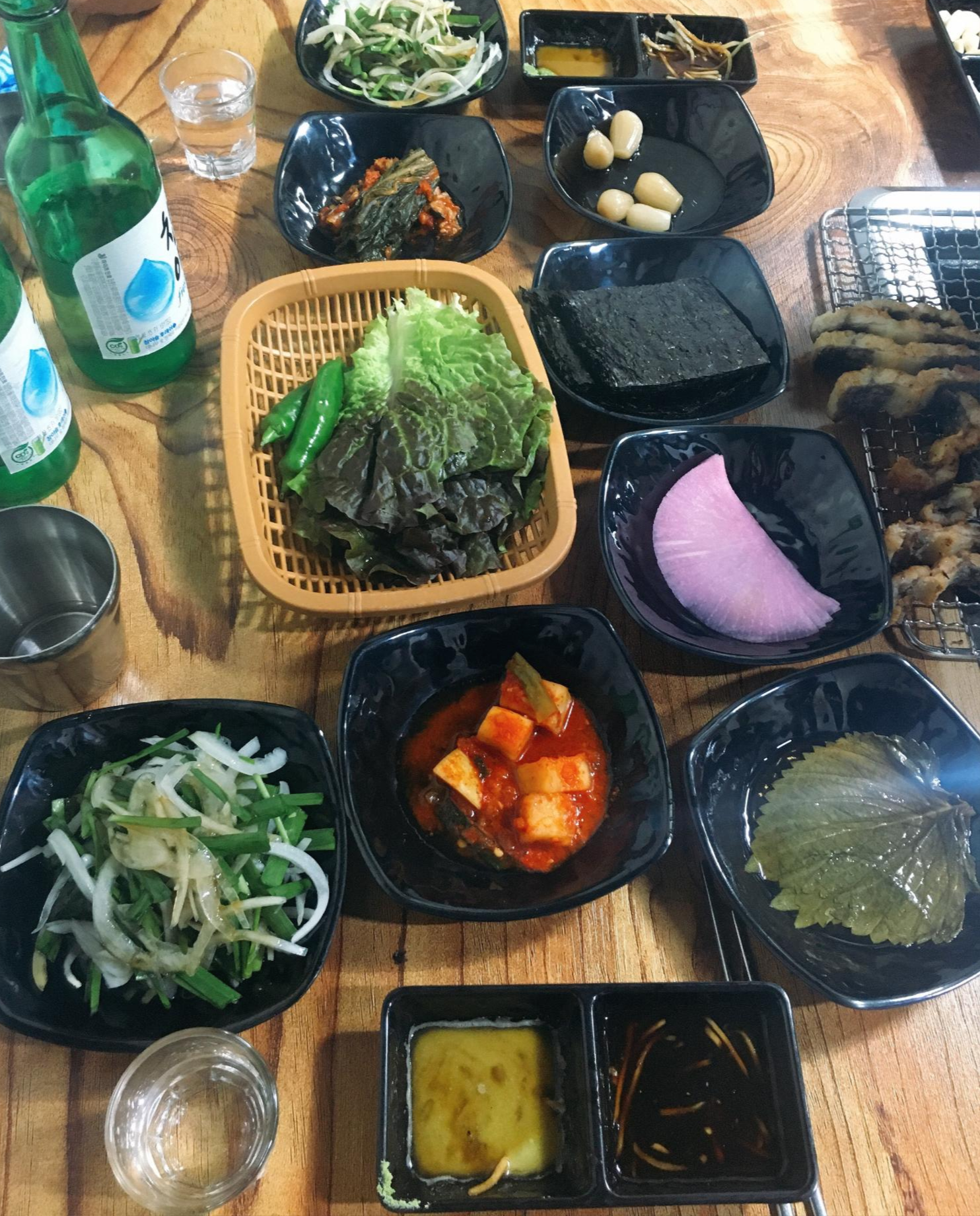 밑반찬 사진 타이밍이 너무 늦어버렸습니다. 밑반찬은 장어집에서 쉽게 접할 수 있는 밑반찬으로 구성되어 있습니다. 장어에 빠질 수 없는 생강, 데리야끼 소스, 구운 김, 깻잎과 김치 등으로 평범한 상차림이었습니다.