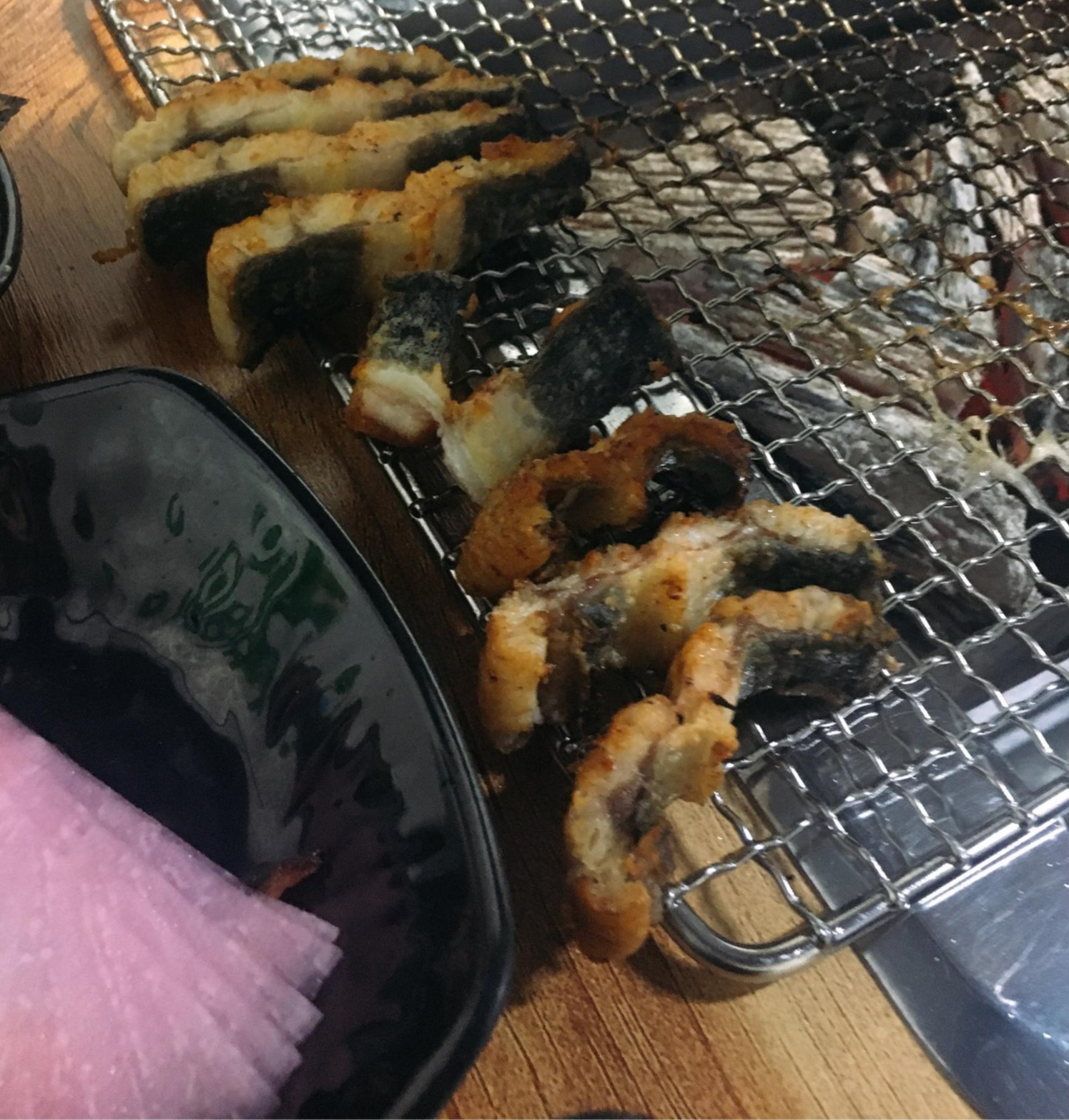 장어의 맛은 가게마다 크게 다르지 않습니다. 그래서 장어구이의 맛을 좌우하는 요소는 구워주시는 분의 스킬에 달려있지 않나 싶습니다. 워낙 경력들이 많으신지 같은 크기, 적절한 굽기로 구워서 배식(?)까지 친절하게 해 주십니다. 굽기 전 굵은소금을 충분히 쳐줘서 간간한 간이 되어있습니다. 꼬리는 미혼 남성부터 제공이 됩니다. 실제로 효능은 없어 보이지만 무언가 꼬리를 먹은 으면 힘이 솟는 플라시보 효과가 있는 듯합니다.