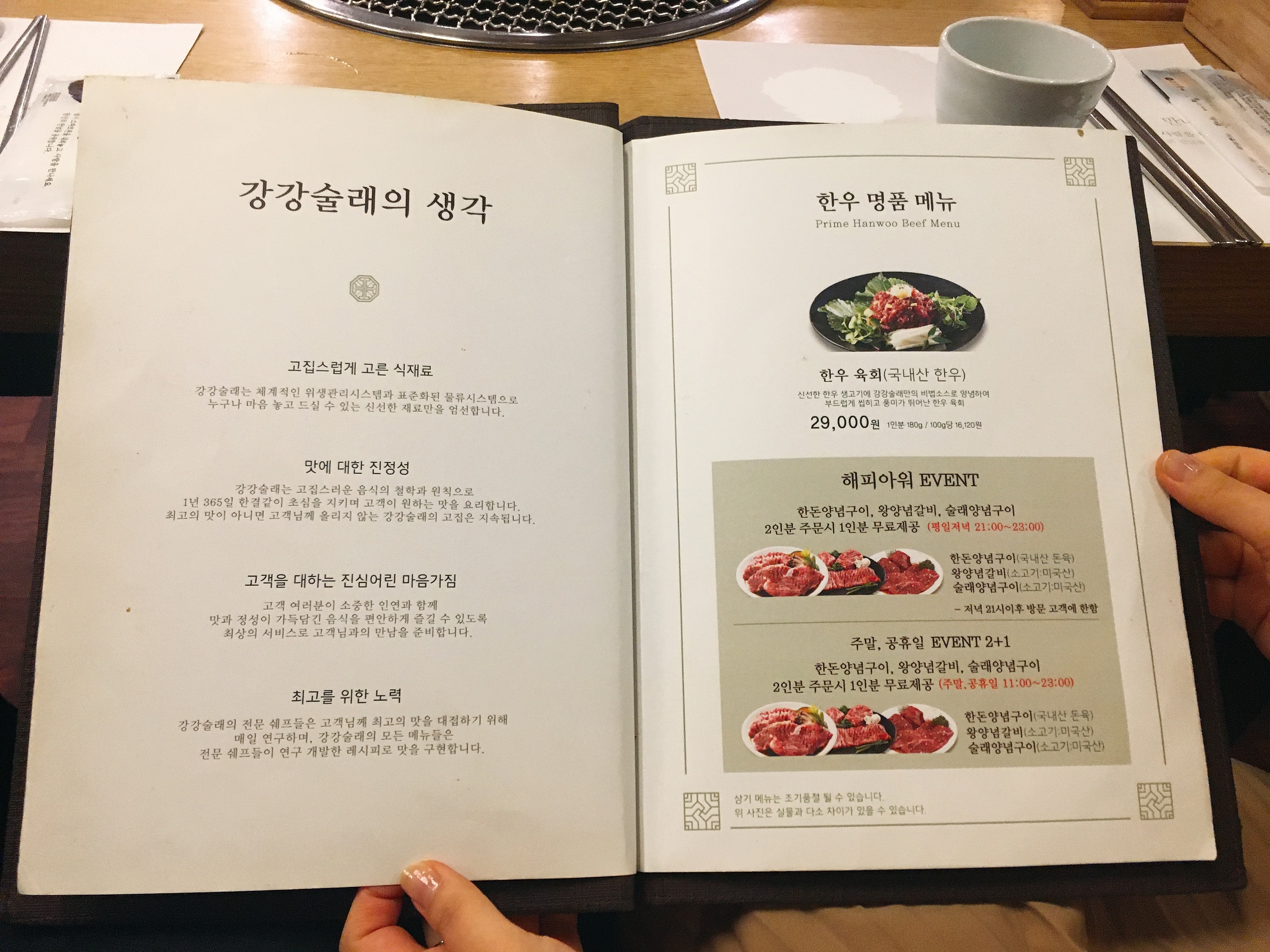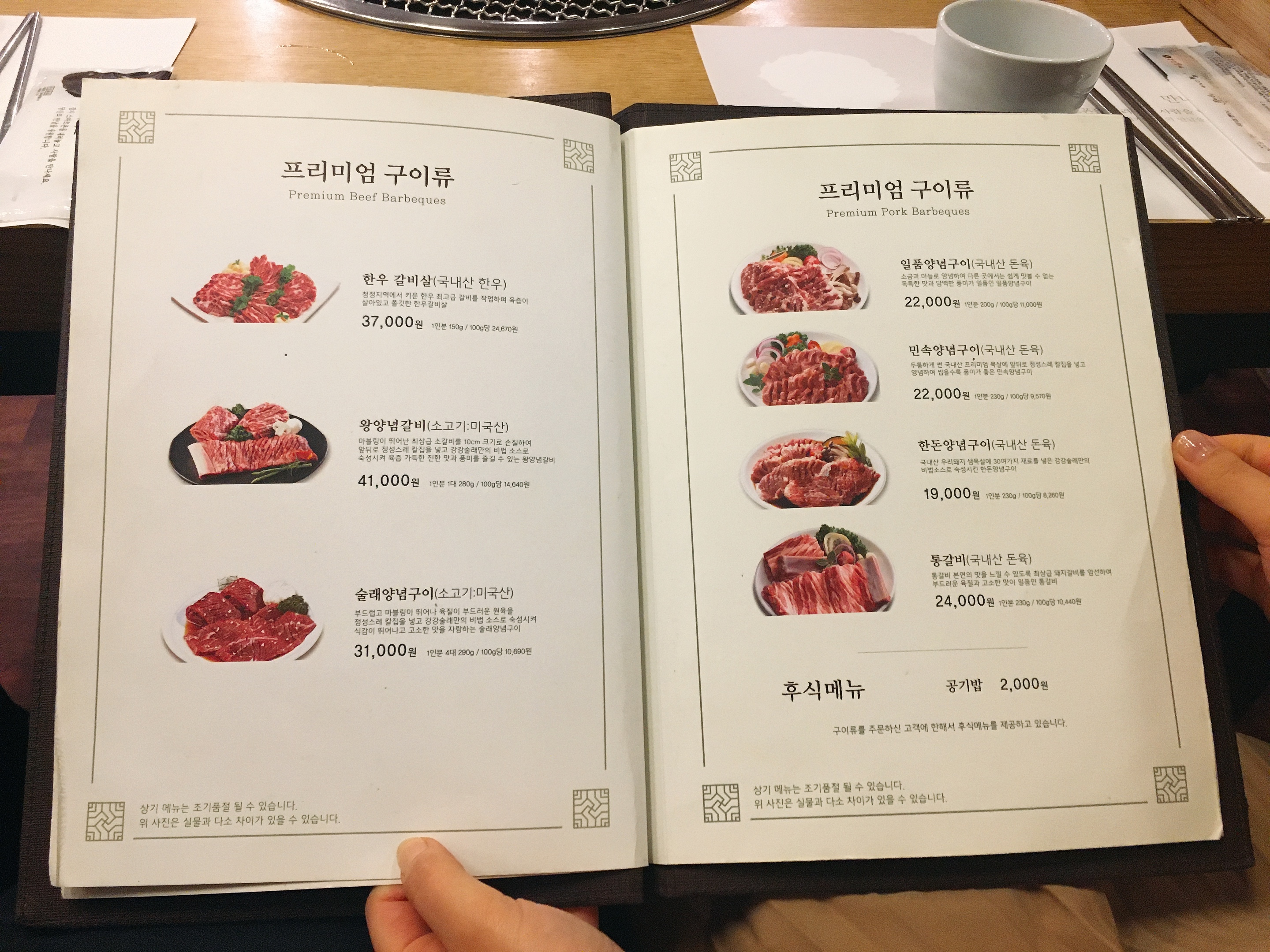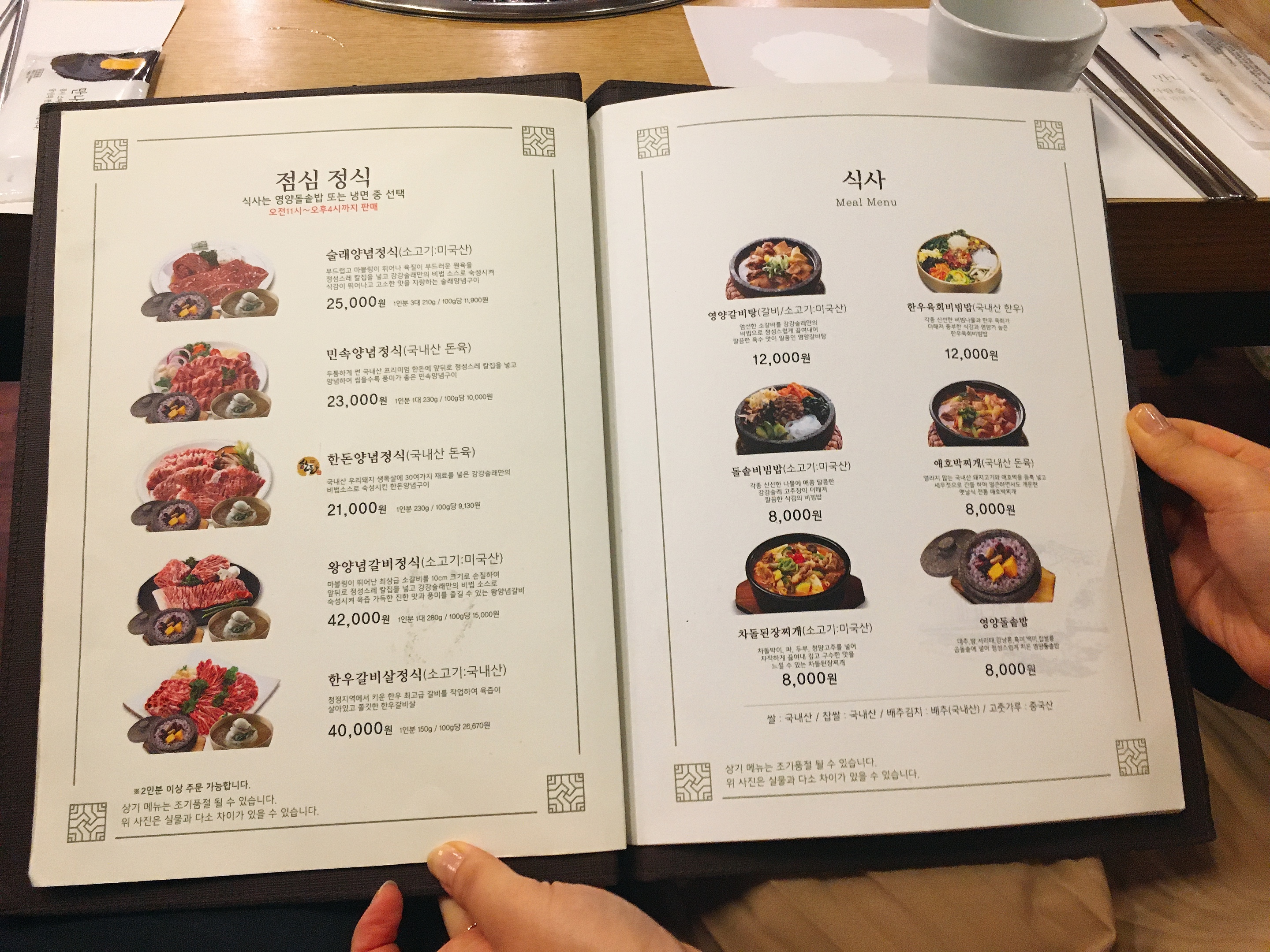 강남사람이 아니라 메뉴판을 보고 청담동 물가인지 이 집만 그런 건지는 모르겠지만 갈빗살 가격에 한번 놀라게 됩니다. 첫 페이지를 잊어버릴 정도로 가격에 대한 충격은 신선했습니다.
