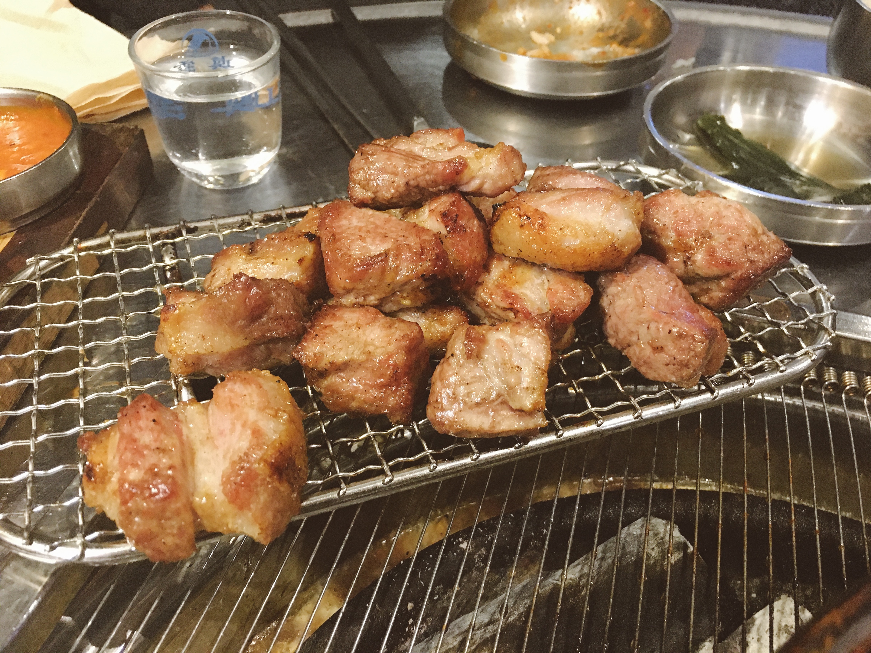 다 구운 고기는 이렇게 따로 제공된 철판에 놓고 기호에 맞춰 드실 수 있습니다. 이런 사소한 배려들이 고깃집을 찾는 이유가 되지 않을까 싶습니다. 물론 고기가 맛있으면 사소한 부분이 보이지 않을 수 있지만, 기본을 갖춘 세심한 배려는 오히려 고기 맛을 더 끌어올리는 요소가 되는 듯합니다. 부모님은 너무 덜 익힌 게 아니냐고 하셨지만 요즘 돼지고기는 미듐 웰던으로 먹어야 제맛이라고 반문을 했지만 결국 기각되었습니다. 질 좋은 고기는 미듐웰던으로 먹으면 고기 맛뿐만 아니라 식감도 좋은 듯합니다. 허나 가끔씩 탈이 날 때가 있어 대부분은 충분히 익혀먹는 편입니다. 가끔 과자처럼 바싹 익혀 드시는 분도 있는데, 개인적을 그렇게 까지 고기를 먹어야 하는 생각도 듭니다만 개인 취향이니 존중하도록 합니다.