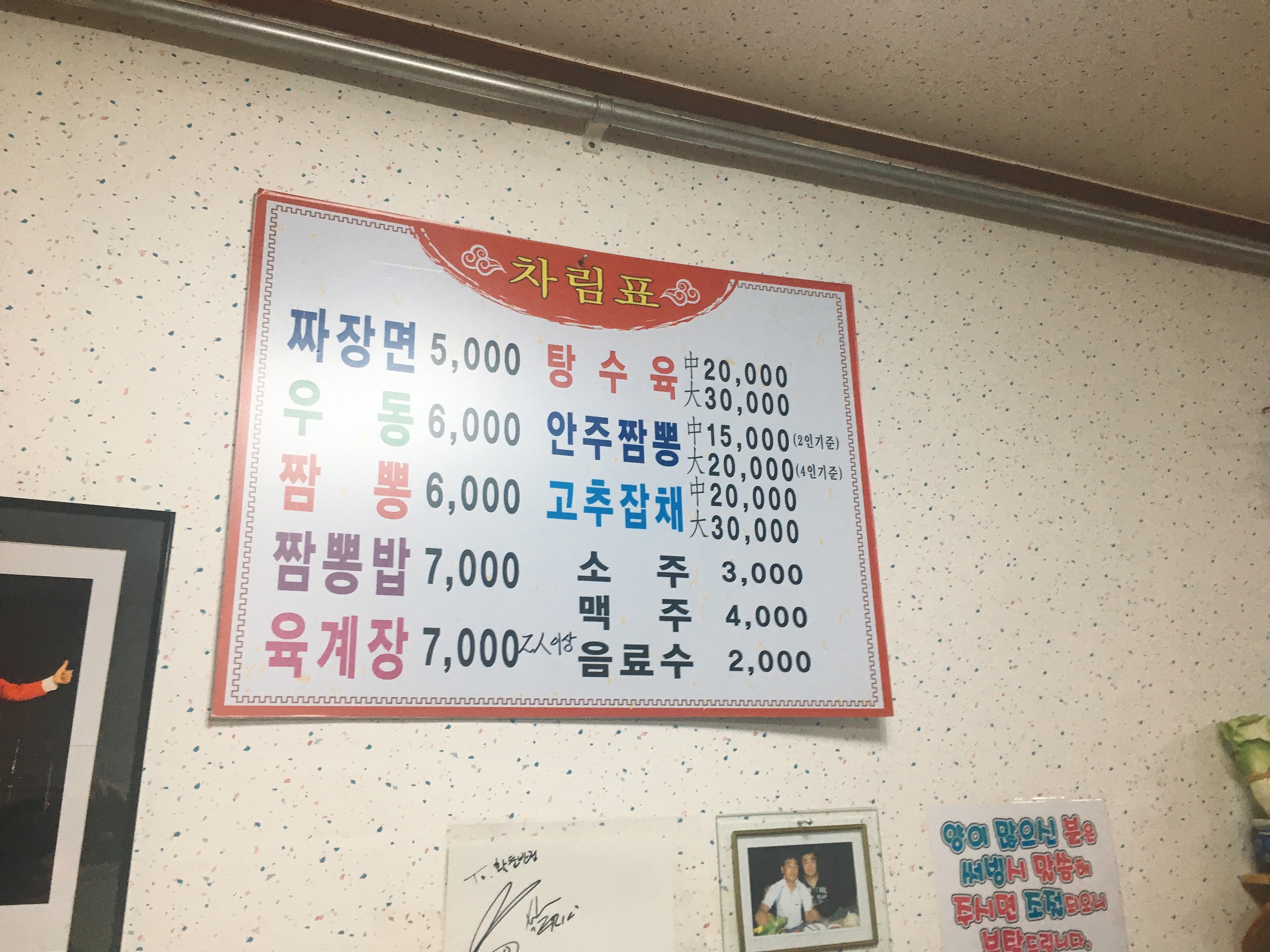 상호에서 알 수 있듯이 중화요리를 파는 식당인데요. 예전에는 짜장면, 짬뽕, 짬뽕밥, 탕수육 정도만 팔았었는데 주인분이 바뀌셨는지 메뉴가 몇 가지 추가되었네요.