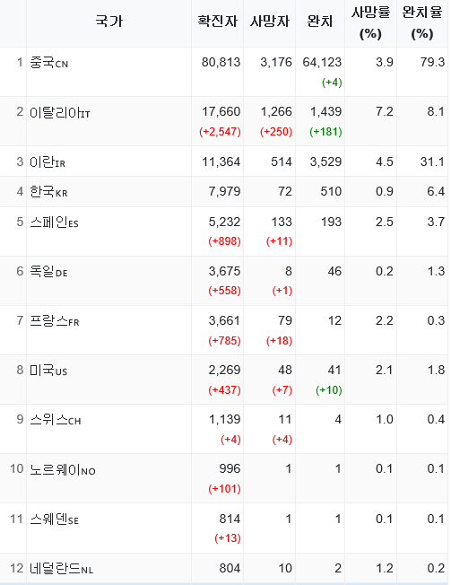 우리나라의 확진자 대비 사망률을 고려해 볼 때 유럽 국가의(특히 이탈리아) 확진자는 더 증가할 것으로 사료됩니다. 아래 코로나 바이러스 관련 자료를 참고해주세요.