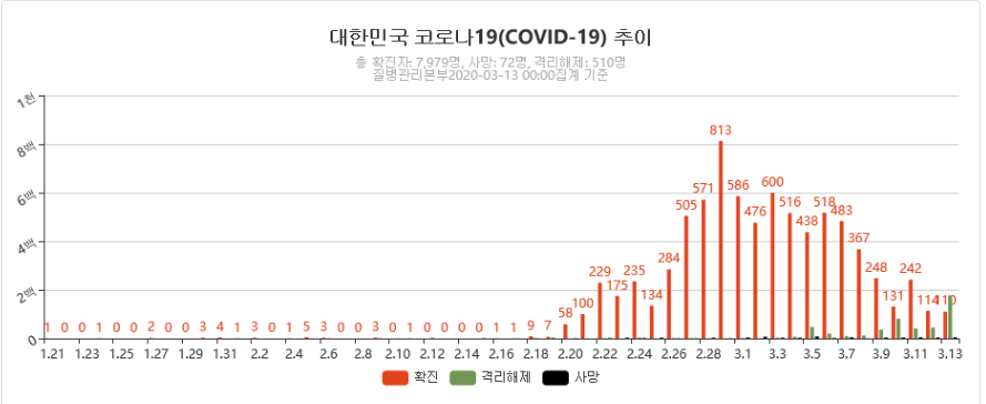 우리나라의 경우 2.20일 집단감염을 시작으로 3월 초 까지는 확진자 급증세였으나, 이후 일 100명 이하의 확진자 증가 추세만 보이고 있습니다. 물론 구로 콜센터 집단감염 등 안심할 단계는 아니기 때문에 각별한 주의가 필요합니다. 다들 외출을 최대한 자제하시고 마스크를 꼭 쓰고 다니시길 바랍니다.
