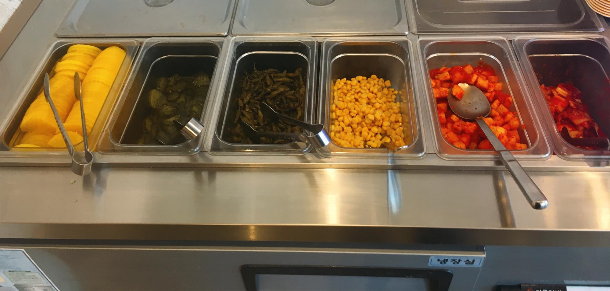 메인 메뉴 외에 사이드 메뉴를 다 찍지는 못했기에 간단하게 설명 드리겠습니다. 아래 사진은 튀김의 느끼함을 잡아 줄 밑반찬들입니다. 제가 주로 먹는 밑반찬은 할라피뇨 입니다. 적당한 매콤함과 짭짤함이 튀김의 느끼함을 잘 잡아줍니다.