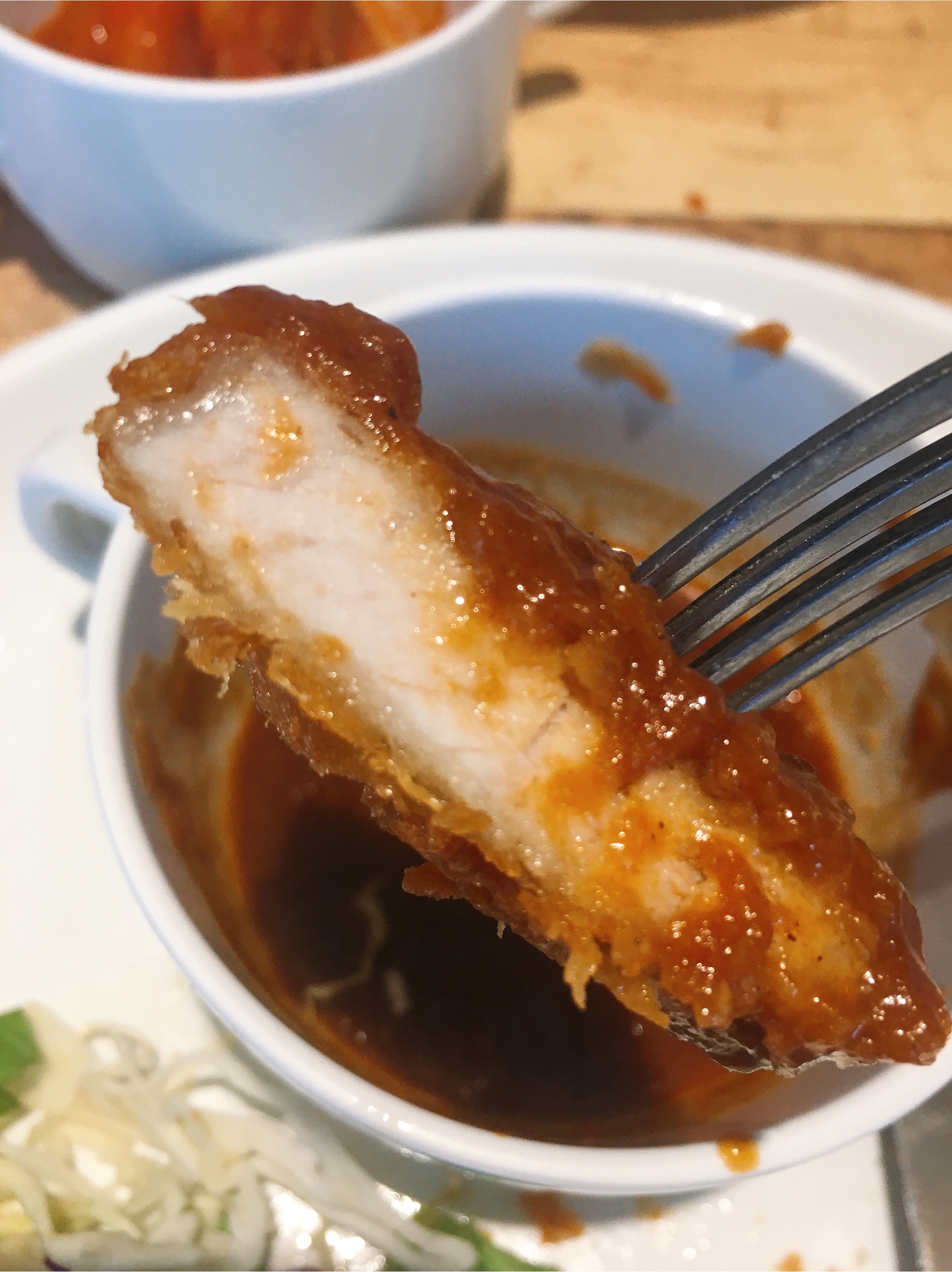 돈까스의 두께는 약 10mm~15mm 정도로 식감과 바삭함을 모두 느낄 수 있는 두께로 제공 되었습니다. 빵가루는 습식 빵가루를 사용 하였고 튀긴지 얼마 되지 않아 튀김의 상태도 매우 좋았습니다. 개인적으로 두께가 있는 돈까스를 좋아하는데 제 취향에도 크게 벗어나지 않는 정도의 두께와 맛을 제공해 주셨습니다.