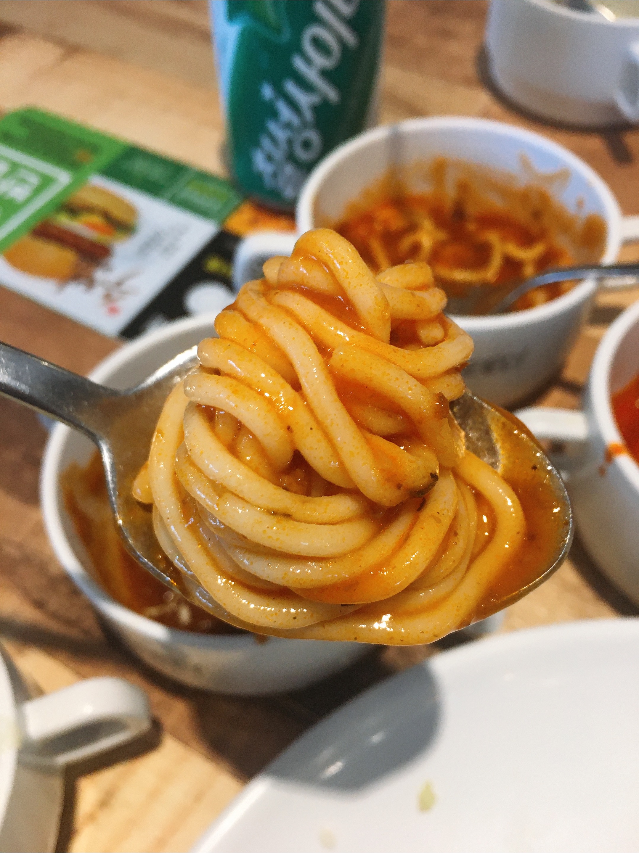 마지막으로 토마토소스 스파게티는 쏘쏘 했습니다. 면이 금방 퉁퉁 불어버려서 먹기 직전에는 우동을 먹는 느낌이 났습니다. 시판 소스도 시큼한 맛이 강해서 개인적인 취향엔 잘 맞지 않았습니다. 스파게티 역시 매번 시도 해보지만 언제나 우리가 아는 그맛입니다.