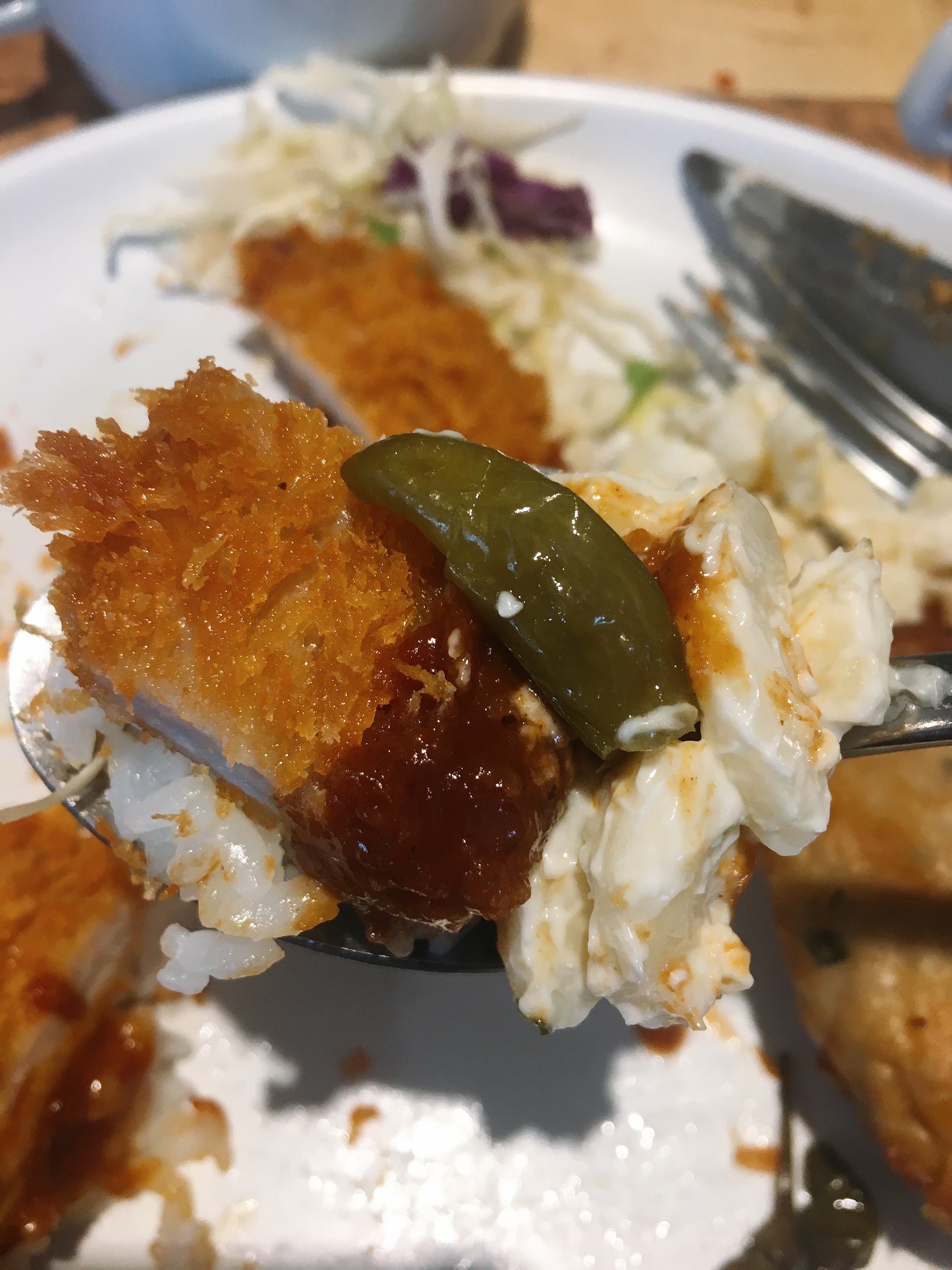 마카로니 샐러드는 저만의 최애 샐러드라 그런지 흠잡을데가 없었습니다. 적당히 느끼하고 마카로니 사이에 당근과 채소들을 배합해 주셔서 식감도 살려주었습니다. 돈까스 먹는내내 같이 얹어서 먹은 듯 합니다.
