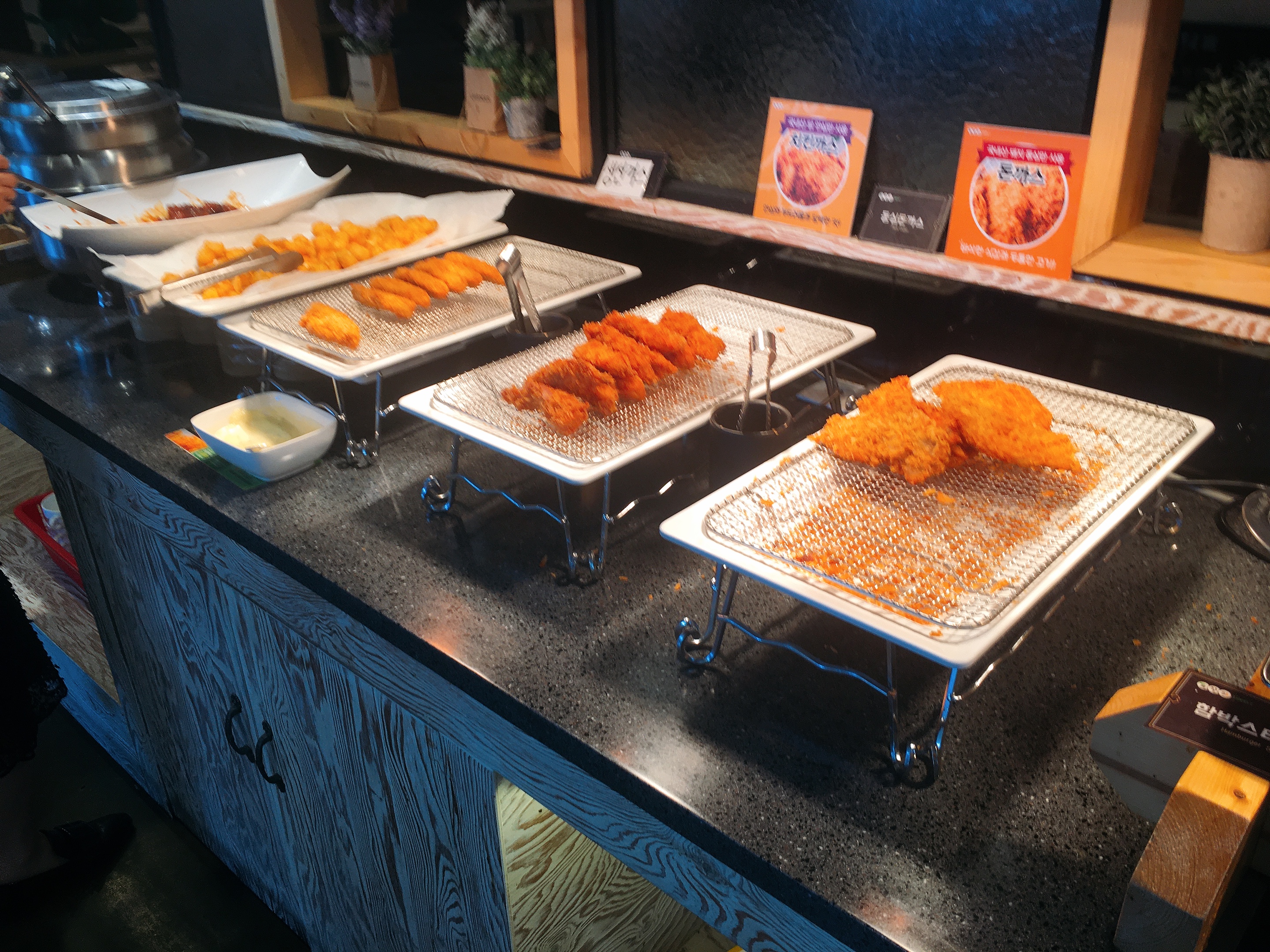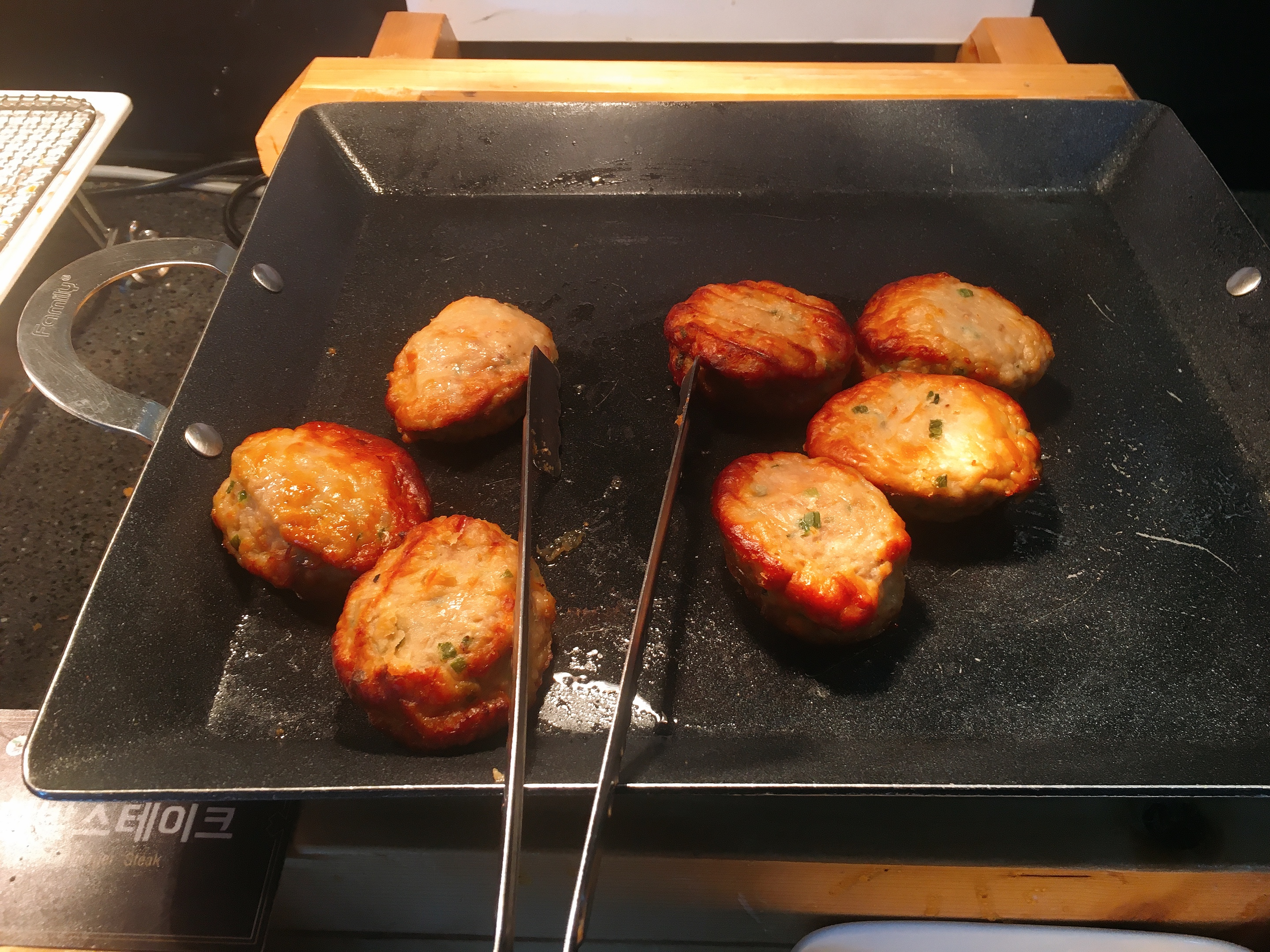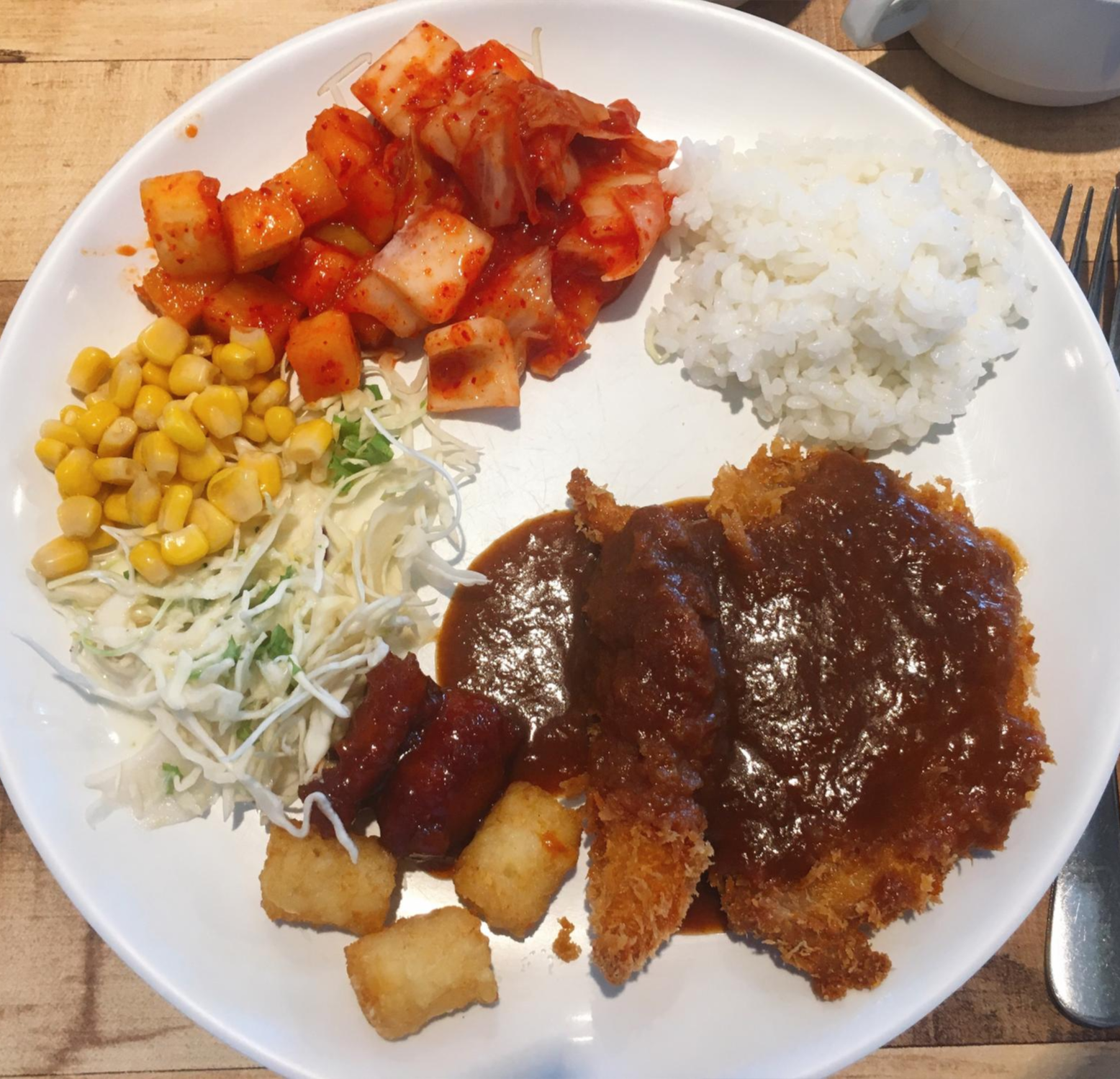 두번째 접시를 시작해 봅니다. 에피타이져를 마쳤으니 두번째는 커스텀을 위주로 즐겨봅니다. 돈까스 한덩이와 빠지지 않는 함박스테이크 그리고 식사를 가져와 봅니다.