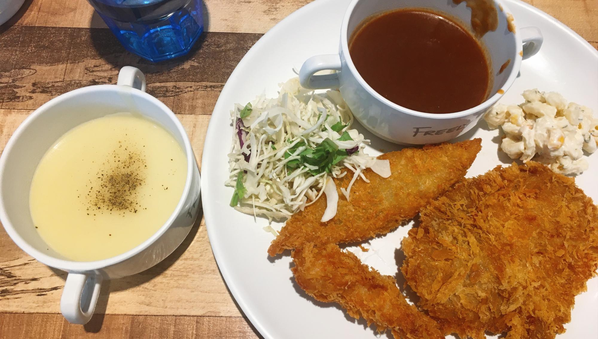 첫 접시를 채워 봅니다. 기본적으로 까스 3형제와 보통소스, 샐러드와 마카로니를 담아옵니다. 식전에 먹는 스프는 부담없이 먹기에 적당한 양만 덜어와 먹어 봅니다. 사진으로 보니 여친님과 먹는 스타일이 비슷하면서도 디테일한 부분이 다르네요. 부먹과 찍먹, 샐러드 소스의 유무등 이렇게 정형화 되지 않은, 자기만의 스타일로 먹을 수 있는게 푸릴리의 장점이라고 할 수 있습니다.